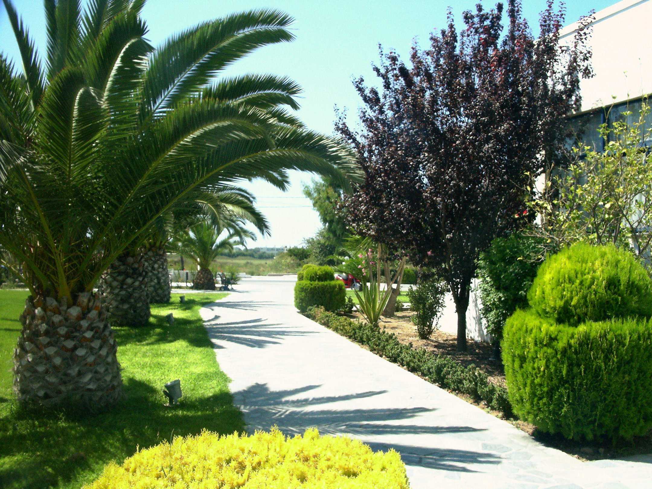 Seitlich vom Hotel in Richtung Strasse