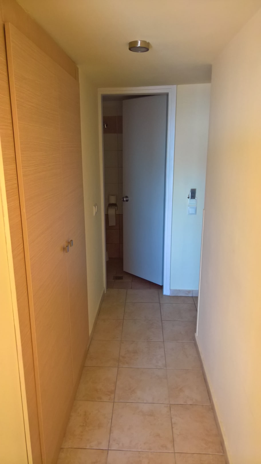 Zimmerflur, links Schrank, geradeaus zum Badezimmer