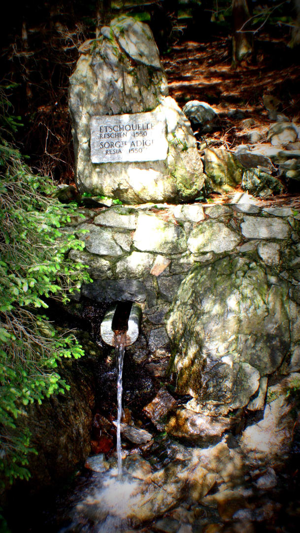 Die Etschquelle entspringt hier am Reschen