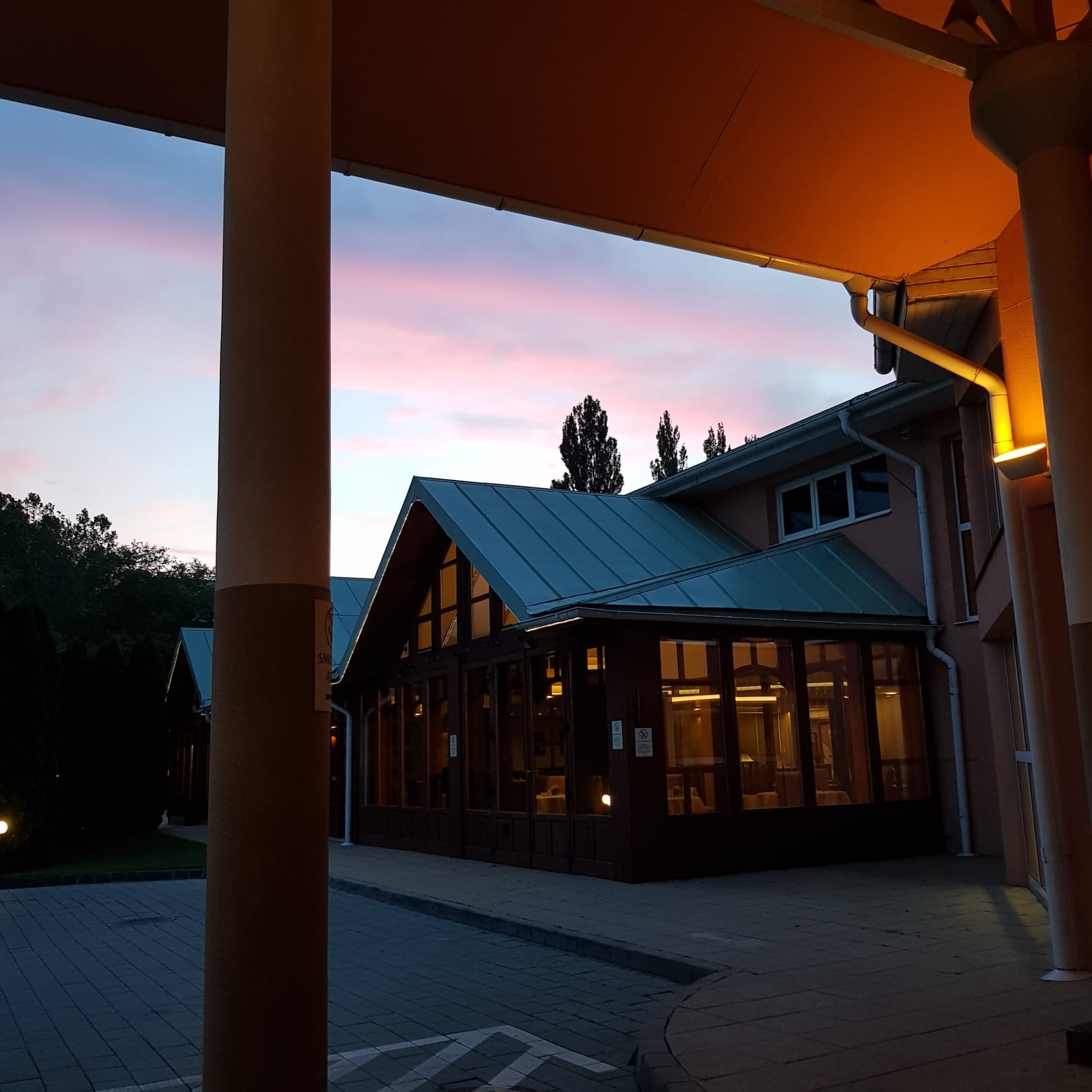 Eingang Blick auf Restaurant, Sonnenuntergang