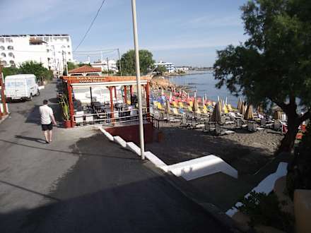 Am Ende vom Wegweiser Nr. 2 angekommen befindet sich links das Hotel und rechts der Beach ..