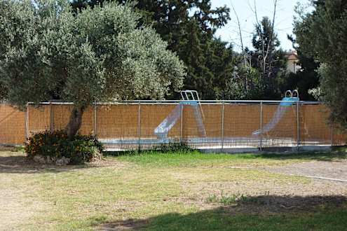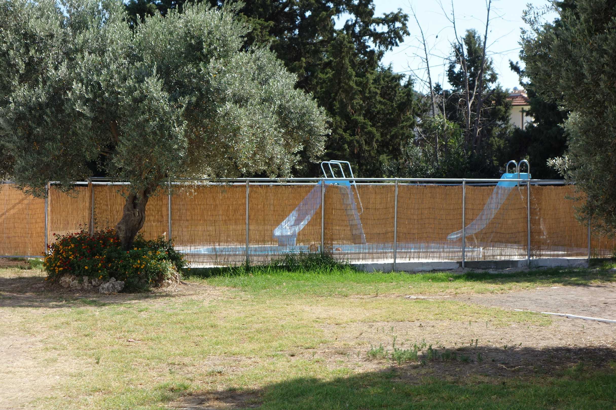Widok na basem ze zjeżdżalniami