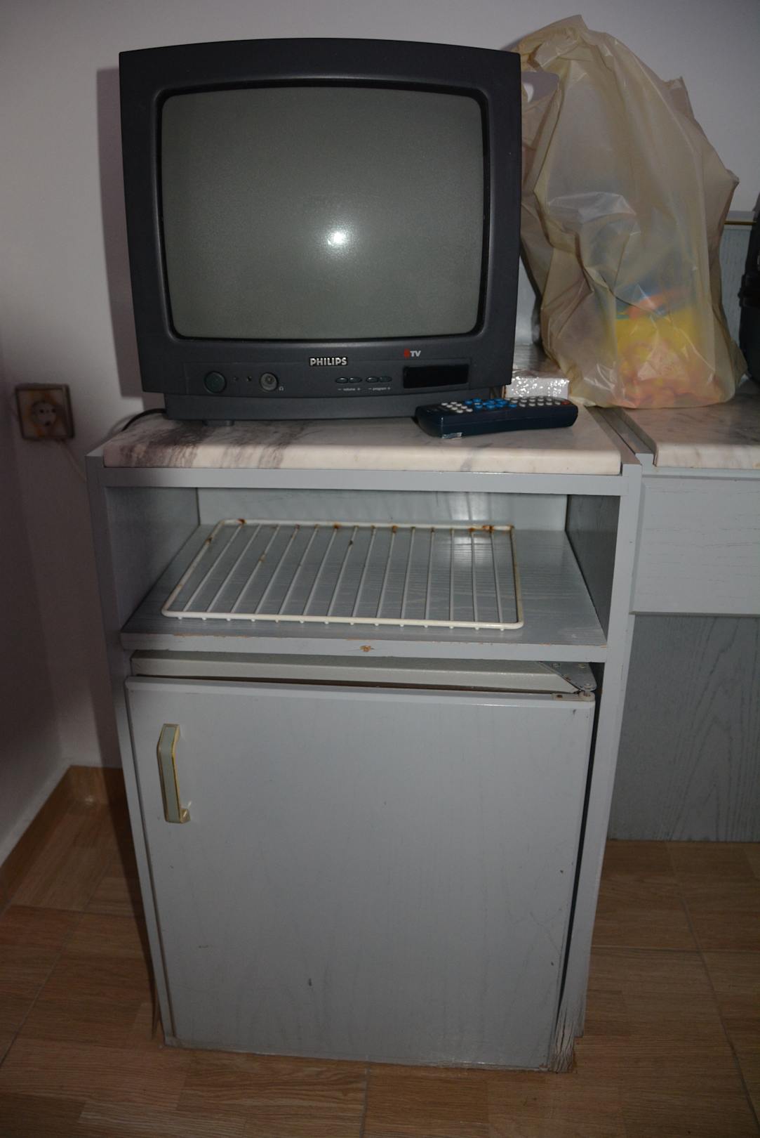 ZIMMER 407 - der kleine Kühlschrank ist größer als das TV-Gerät - Vorsicht Augekrebs