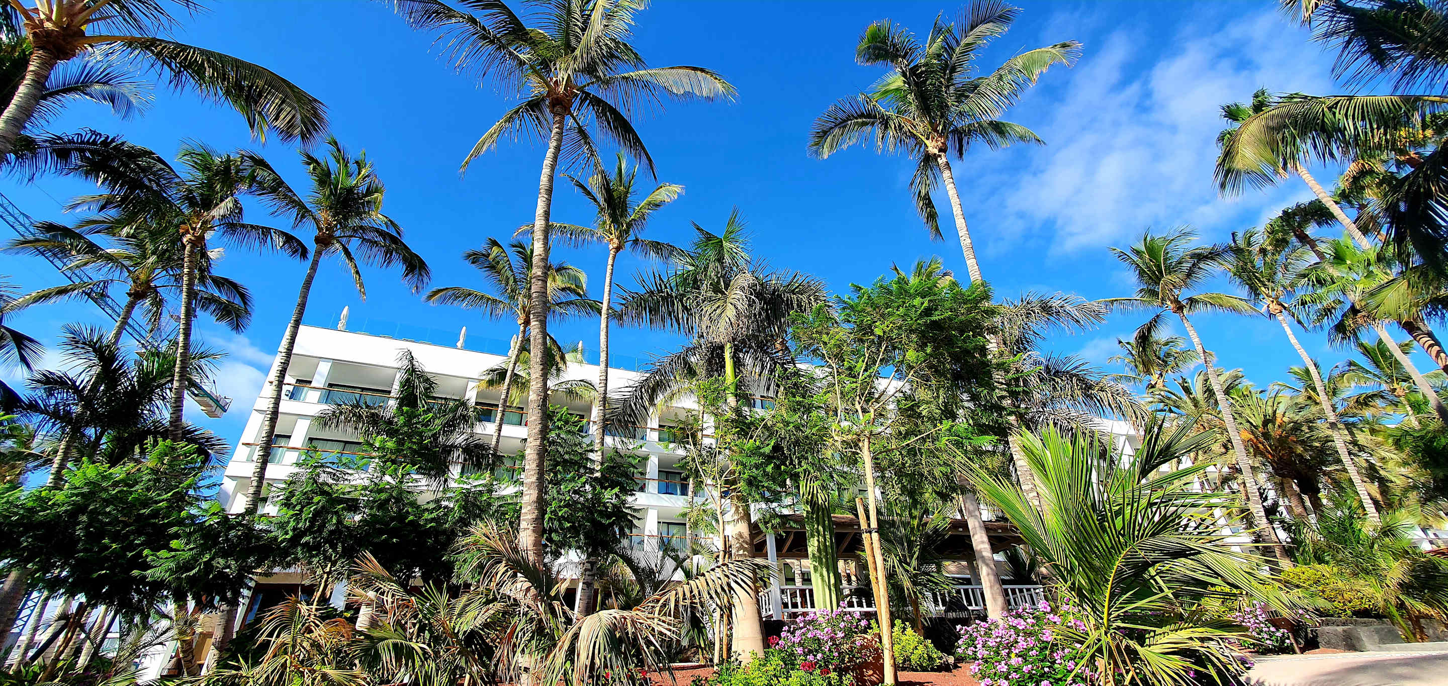 Blick aus dem Garten auf das Hotel.