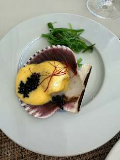 Frisch geflämmte Jakobsmuschel