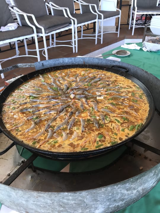Mittags gab es ca. alle 2 Tage eine Spezialität, wie hier Paella mit Meeresfrüchten