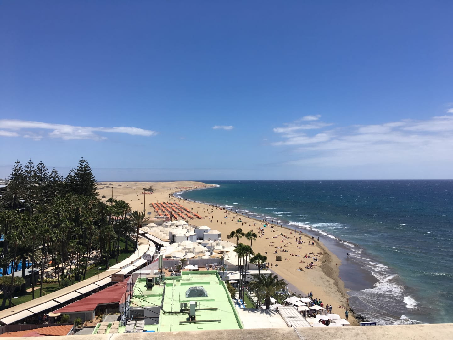 Ausblick von der Dachterrasse zu den Dünen