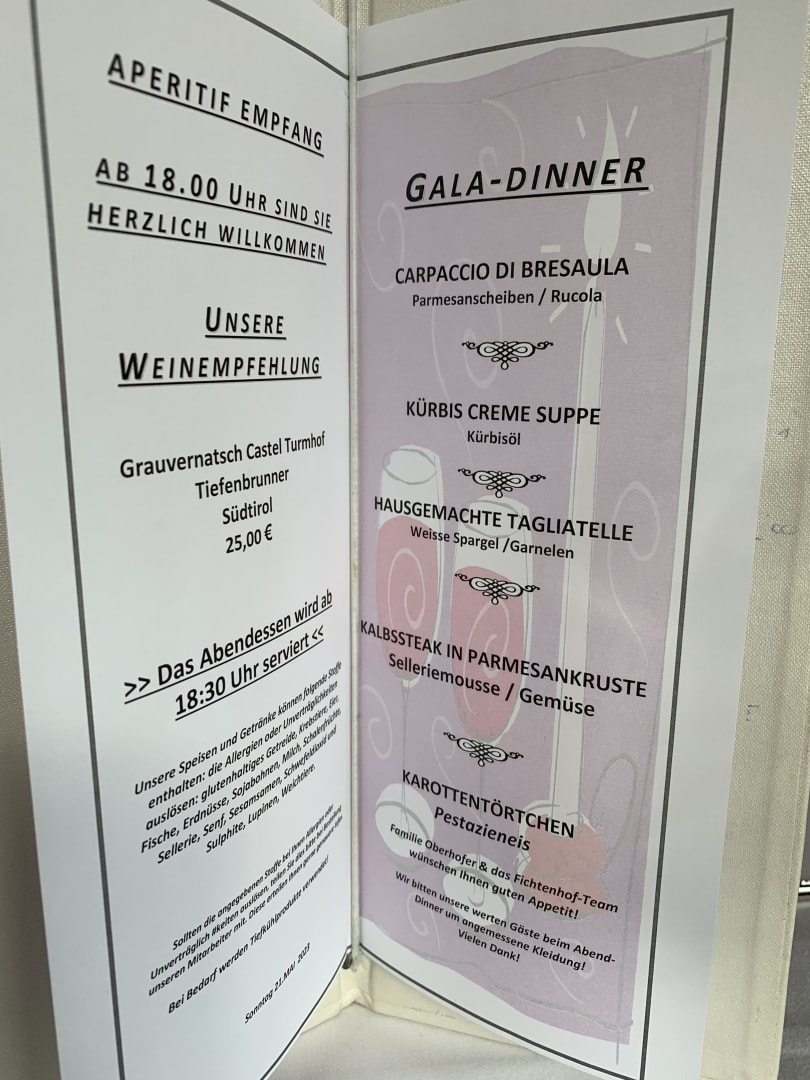 Speisekarte, liebevoll gestaltet