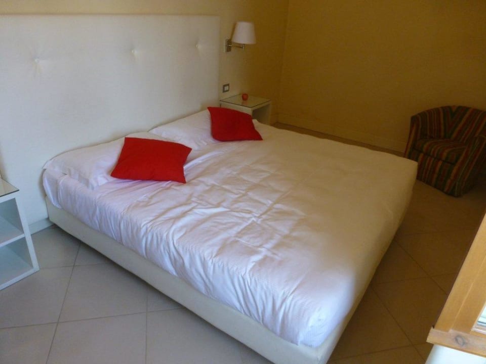 Das Bett ist fest (nicht hart) und sehr gemütlich. Das Zimmer selber sauber, modern (IKEA) und groß genug. Innenliegende Fensterläden verdunkeln das Zimmer genügend.