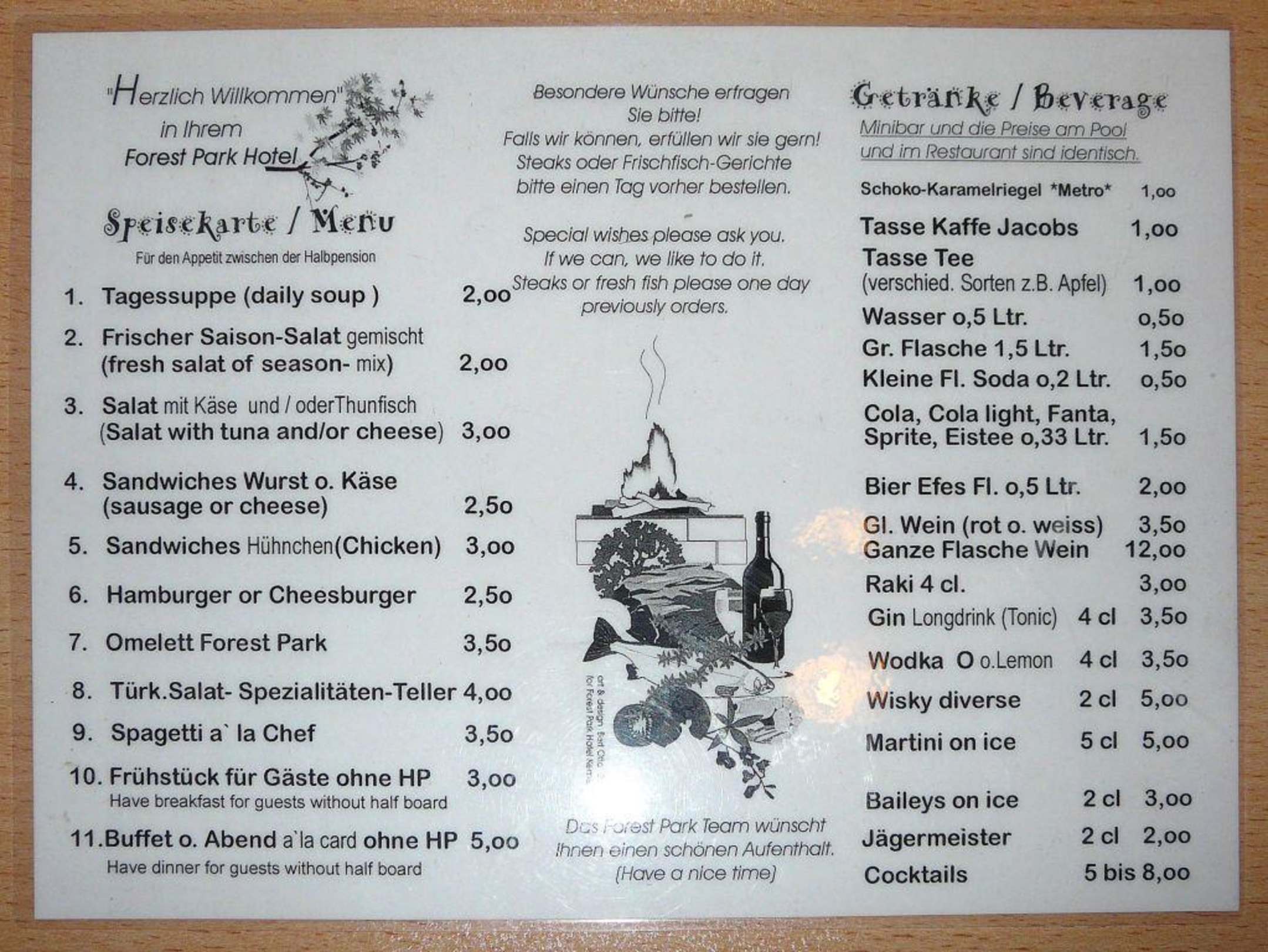 Preise der Minibar, Poolbar & im Restaurant