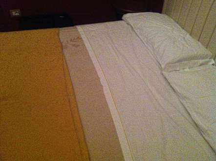 Das Bett war neben einem Laken zum Zudecken mit einer alten Wolldecke ausgestattet. Diese Wolldecke wollte man nicht berühren, da ungewiss war, ob die jemals schon gewaschen wurde.