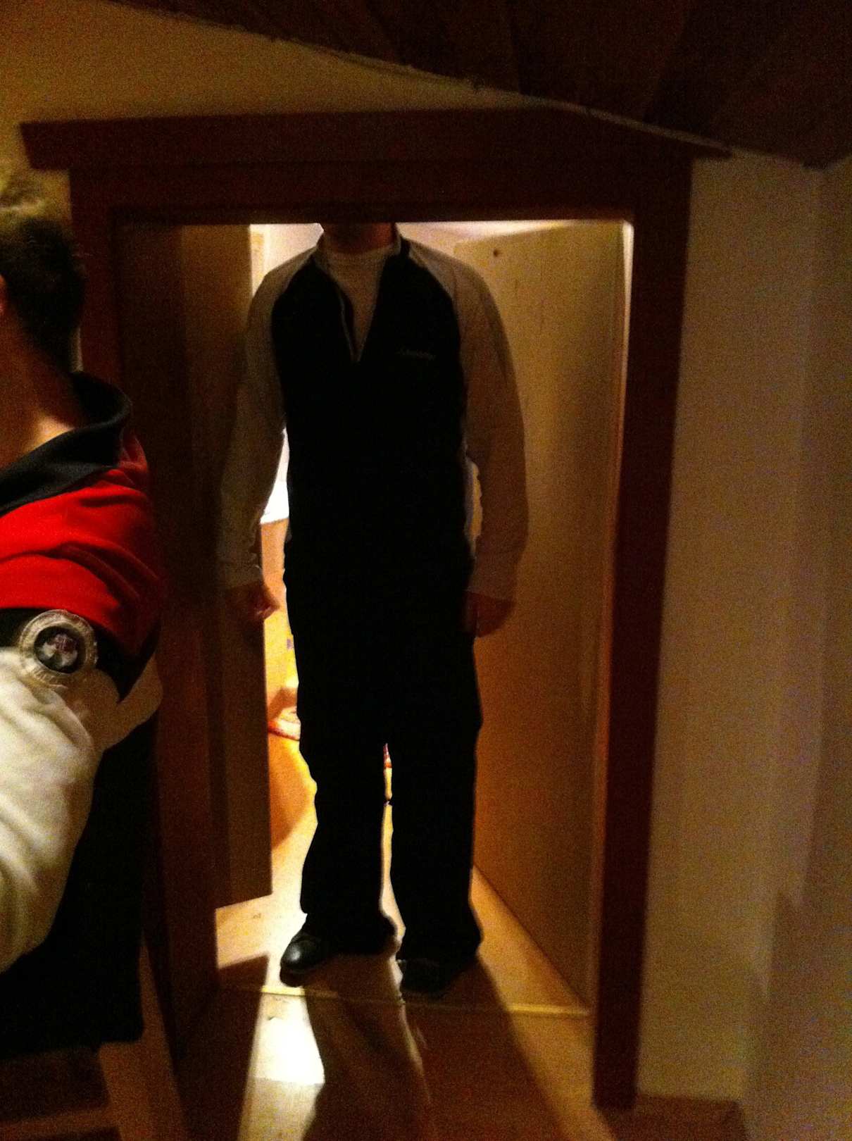 Größenvergleich Theo 1,84m Türhöhe etwa 1,70m