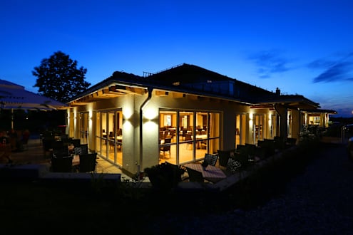 Hotel mit Terrasse bei Nacht