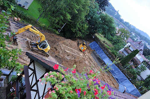 Blick zur Baustelle auf dem Nachbargrundstück