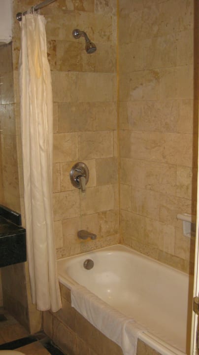 ZimmerBad mit Badewanne, schmuddeliger Vorhang
