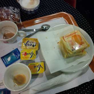 2 Zwieback und Automatenkaffee
