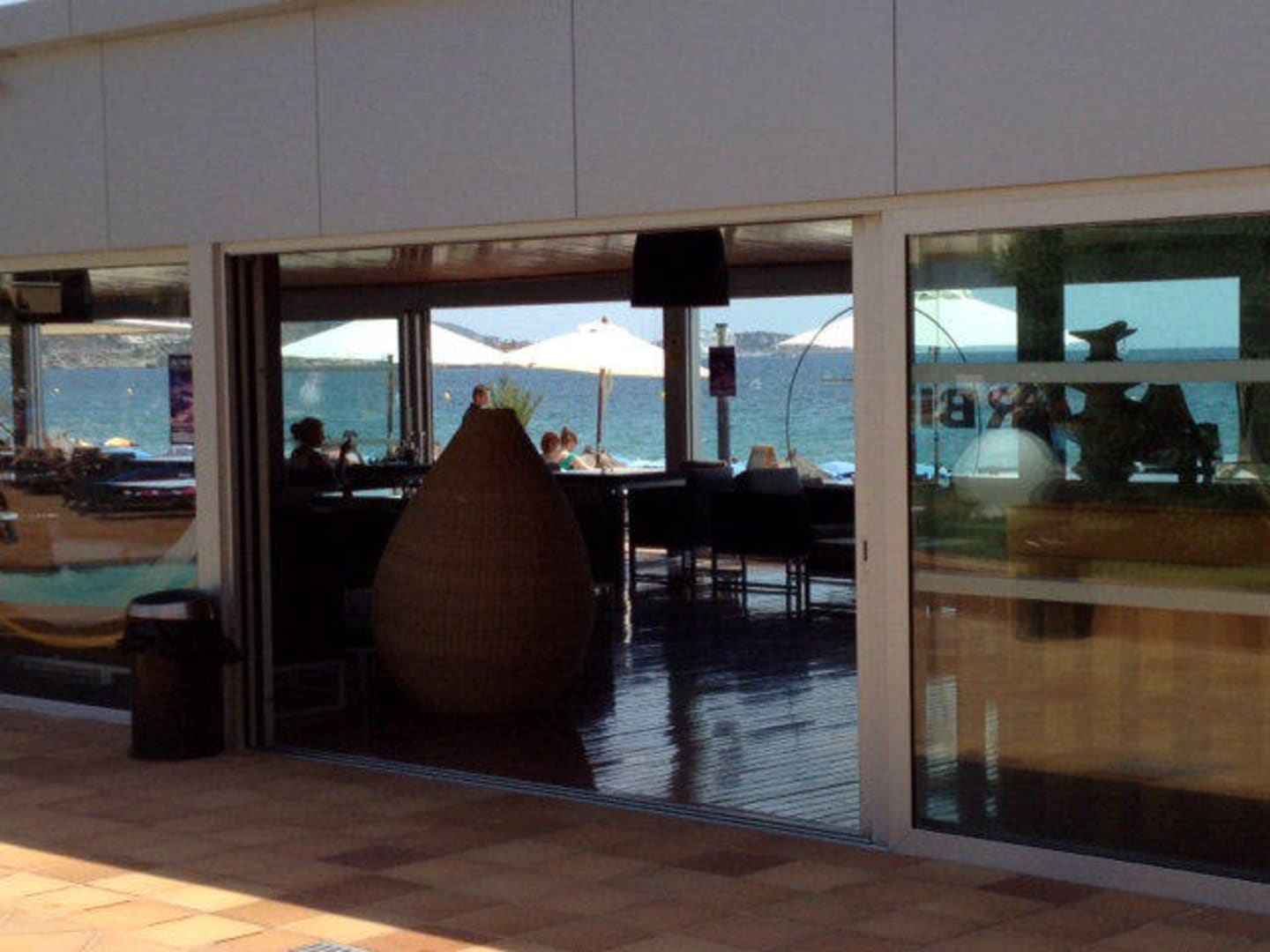 Blick durch Restaurant zum Strand