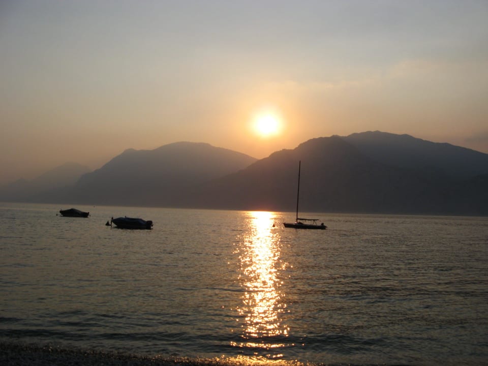 Blick vom Balkon auf den Gardasee mit Sonnenuntergang