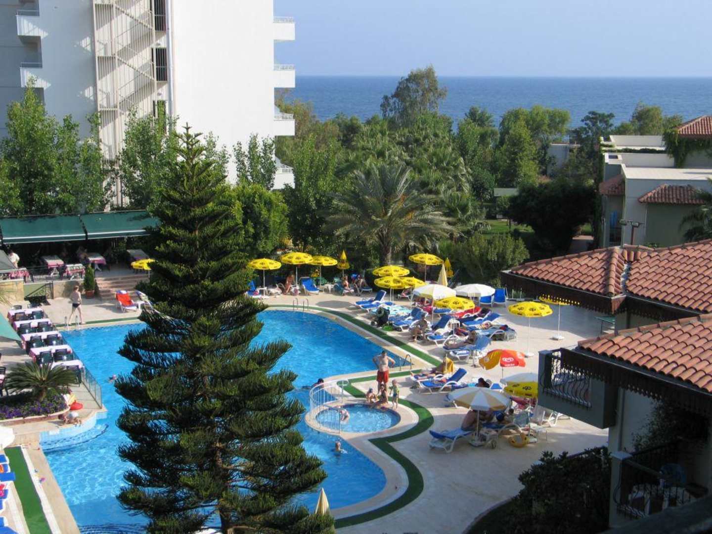 PoolBlick vom Balkon zum Pool - im Hintergrund (weiß) Nachbarhotel welches wohl 2007 fertiggestellt wurde und einigen Zimmern unseres Hotels einiges an Meerblick weggenommen hat