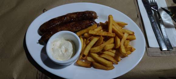 Leckeres Essen, 2 Bratwürste mit Pommes