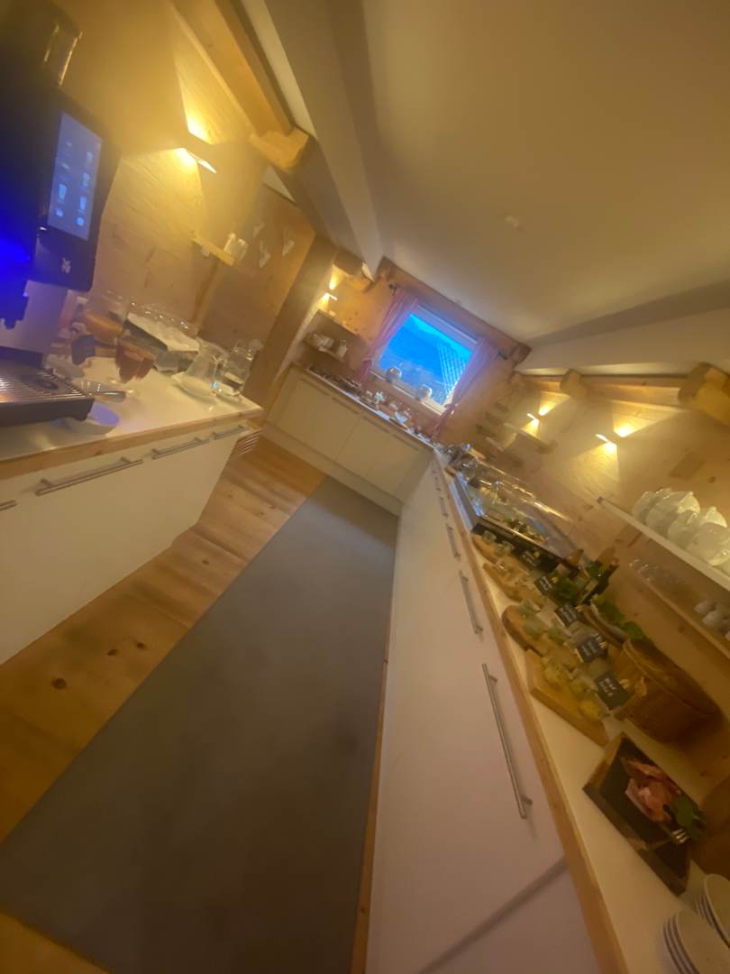 Der Frühstücksraum liegt zwar im Kellergeschoss, ist aber so gemütlich eingerichtet und das Frühstück so vielfältig, dass es nicht stört. Es ist aber auch Tageslicht vorhanden.