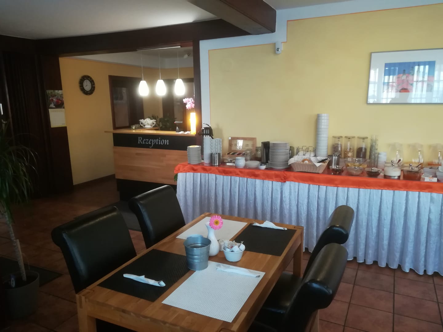 Gleich am Frühstücksraum befindet sich die Rezeption.