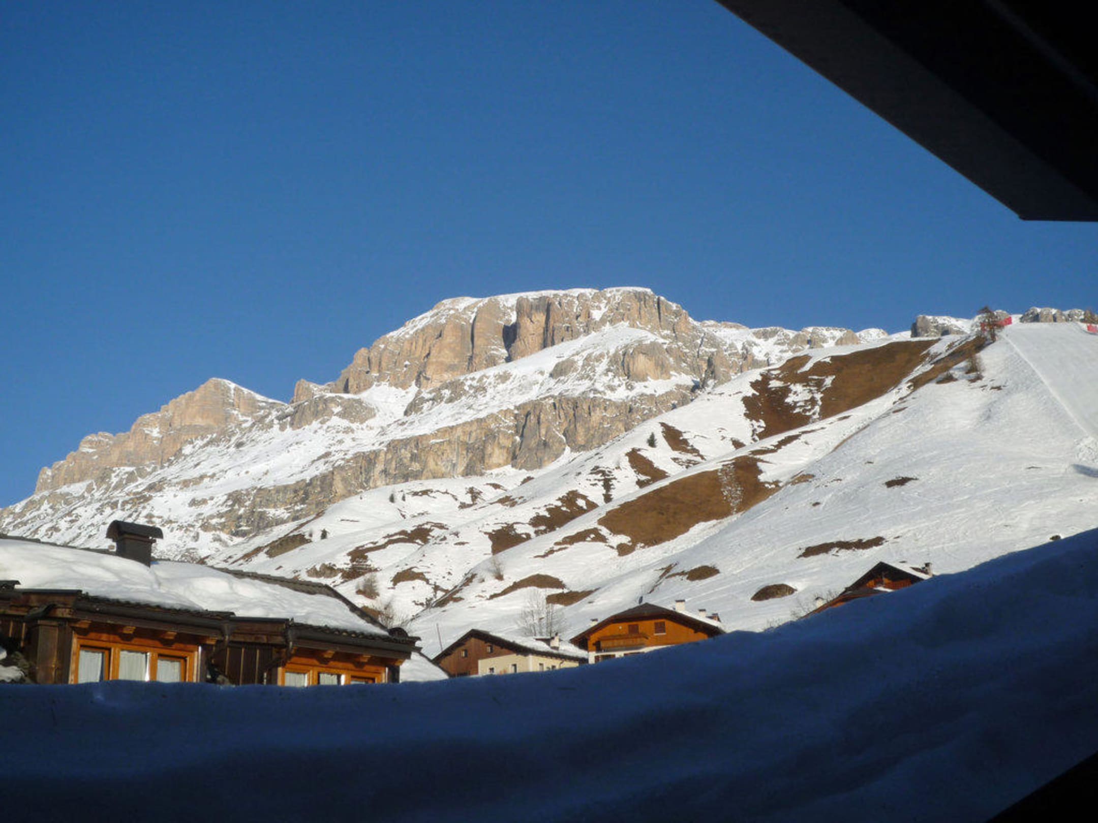 Piz Boe aus dem zugeschneiten Fenster