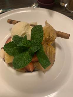 Frischer Obstsalat mit Vanille Eis