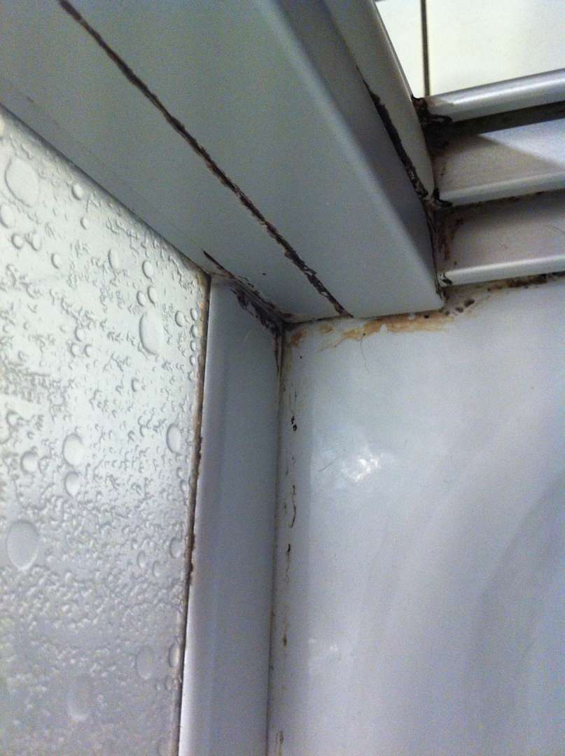 Schimmel in den Fugen der Duschkabine.