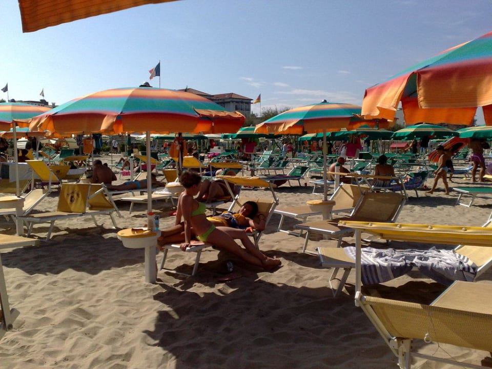 Liegen und Schirme am Strand
