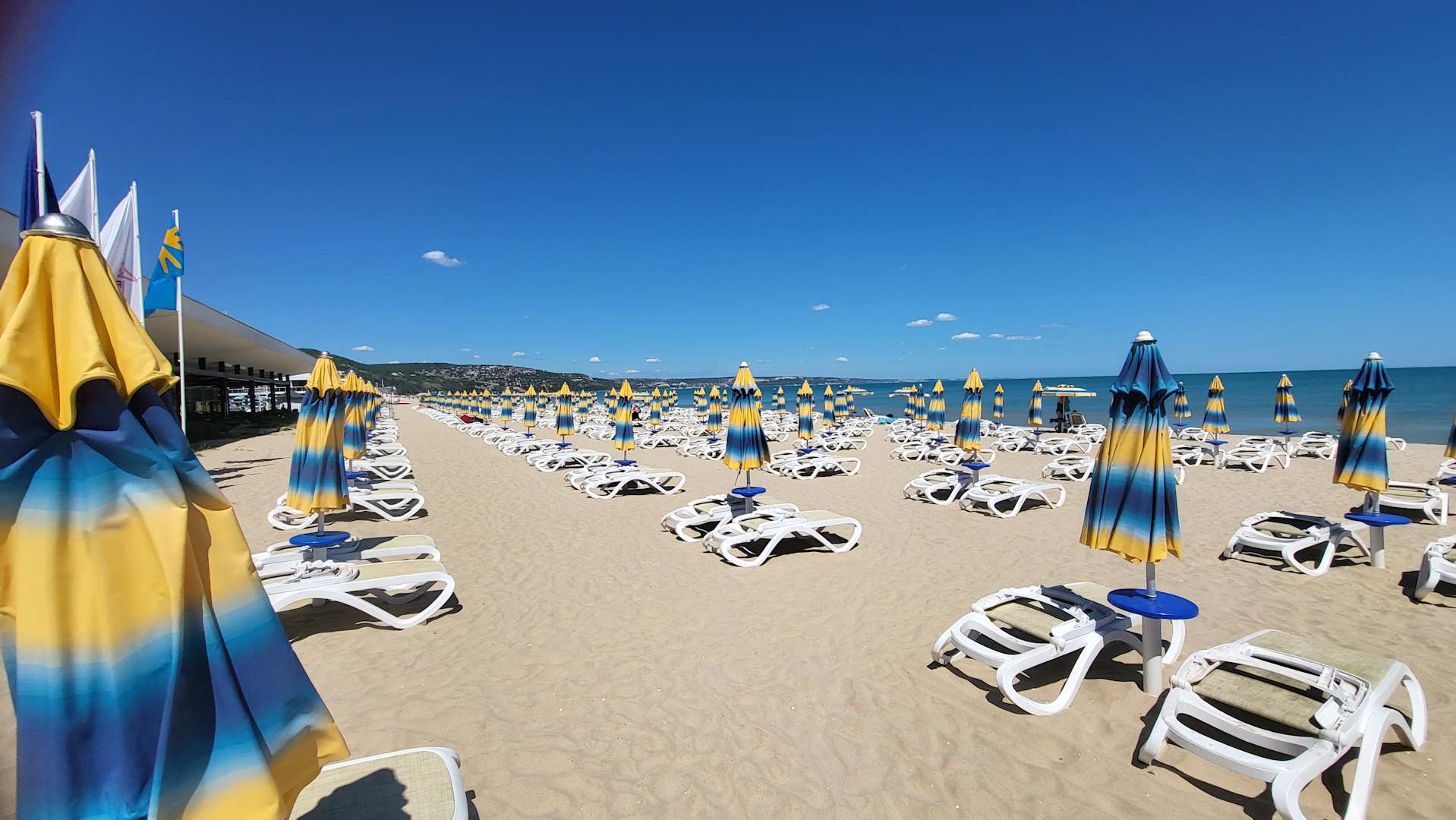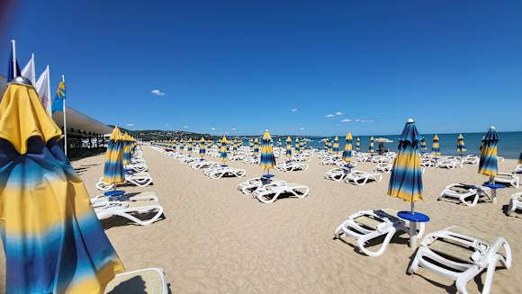 Unendlich weit und viele viele Liegen und Schirme (um 9:00 Uhr vormittags)