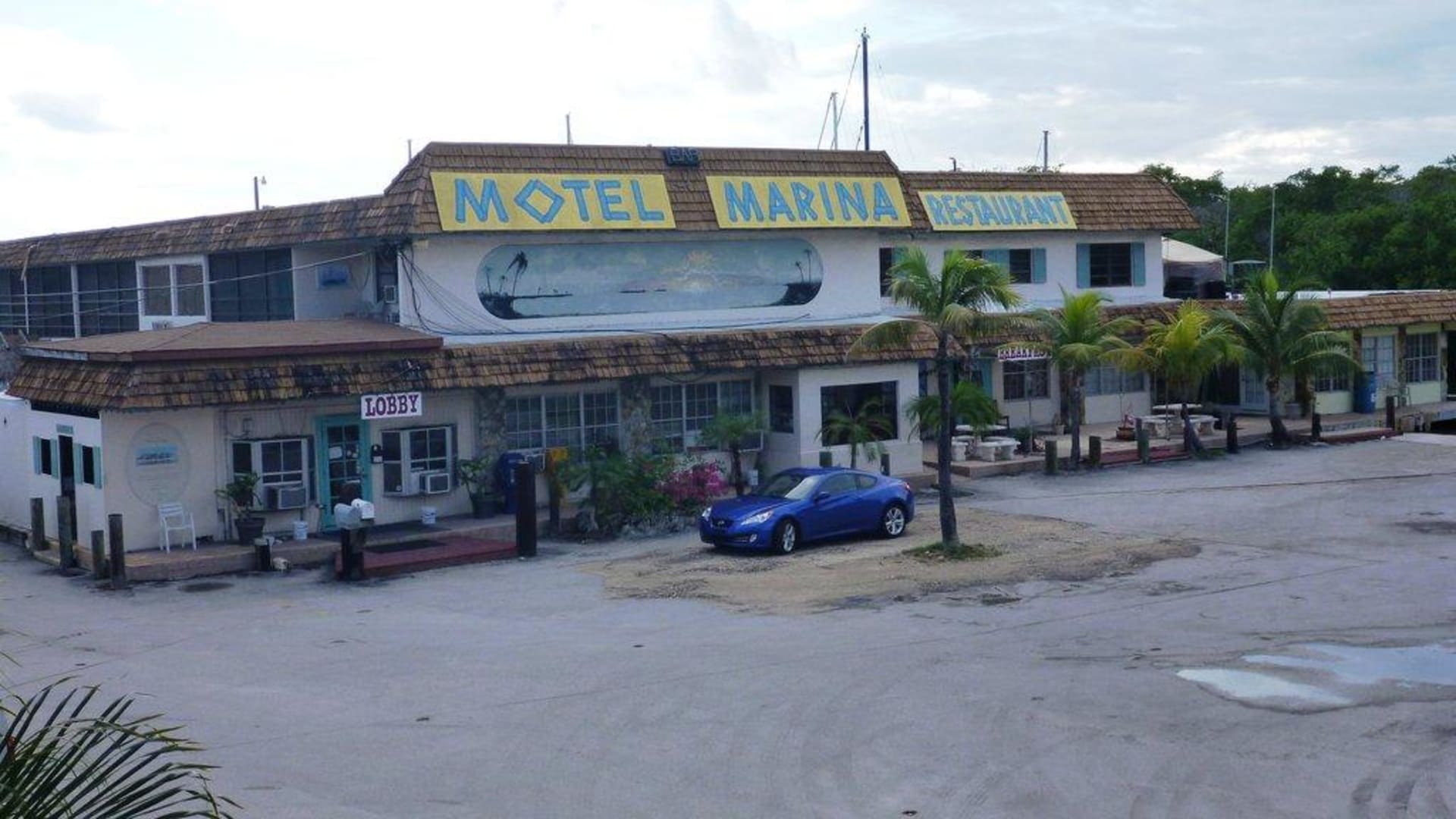 Links ist der Zugang zur Rezeption und auf der rechten Seite des Gebäudes der Zugang zum Frühstücksraum. Die Yachtbesitzer melden sich hier auch für die Nutzung des Hafens an.