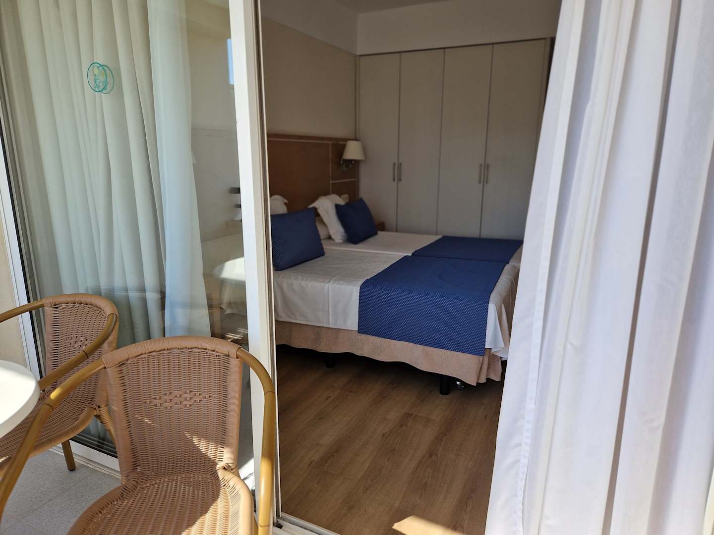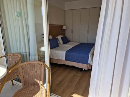 Doppelzimmer 701 mit möbliertem Balkon.