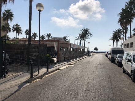Weg zum Strand vorbei an der Bar Capitan Hook die zum Hotel Girasol gehört .