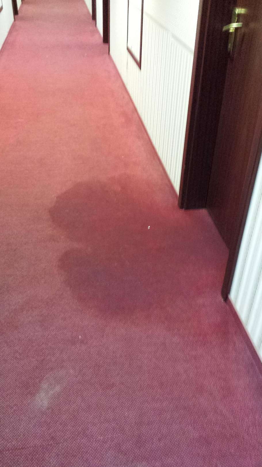 Vor einem anderen Zimmer in unmittelbare Nähe zu unserem Zimmer war tagelang ein undefinierbarer Fleck im Teppichboden. Wir vermuten, dass es sich um Erbrochenes gehandelt, was vergeblich versucht wurde zu entfernen.