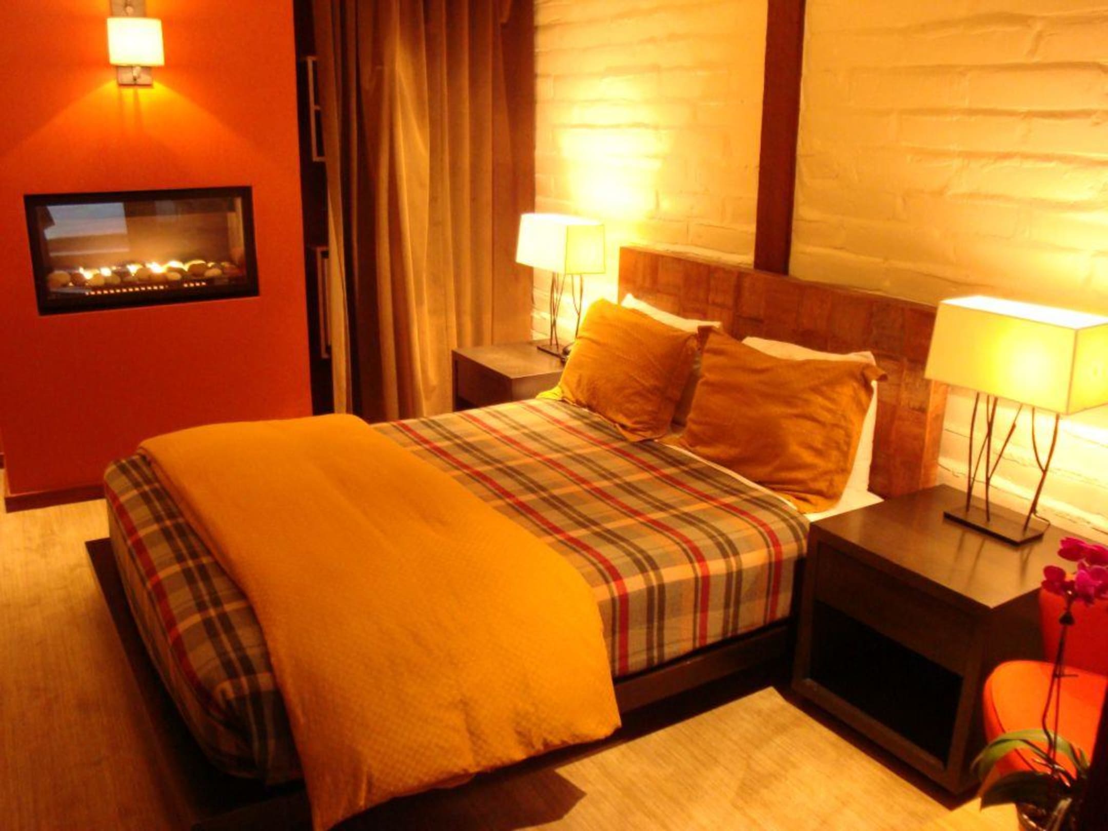 Bett mit Kamin