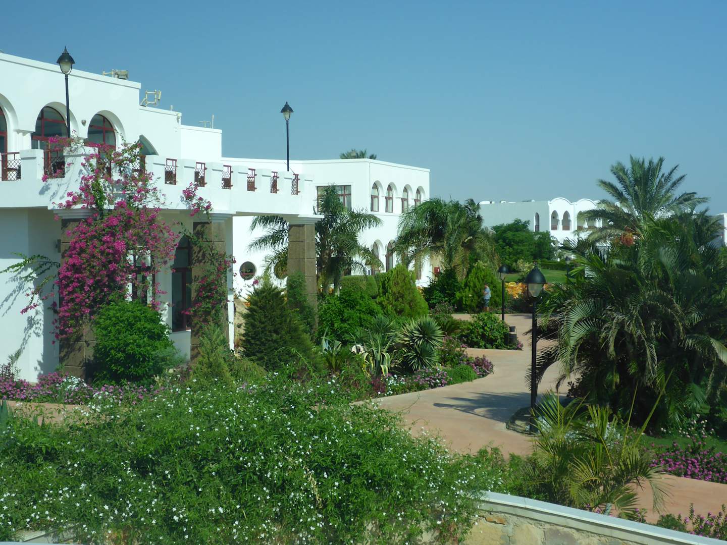 Blick vom Restaurant auf das Hauptgebäude