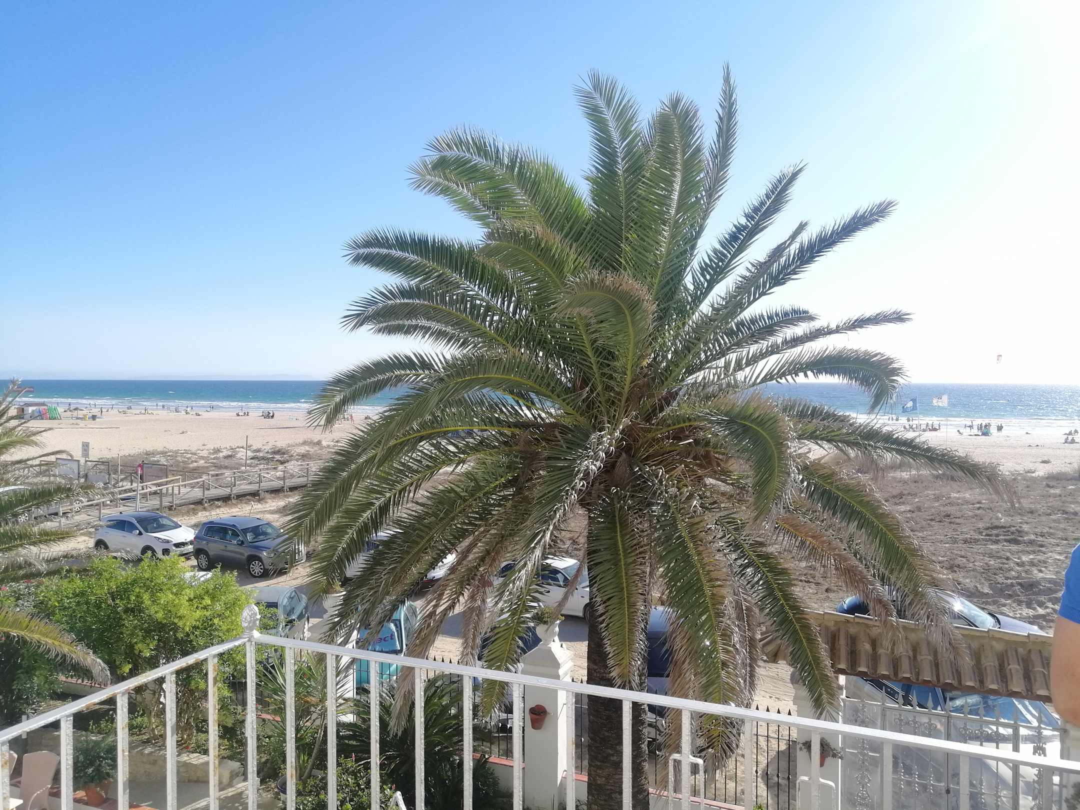 Blick vom Balkon auf den Strand.
