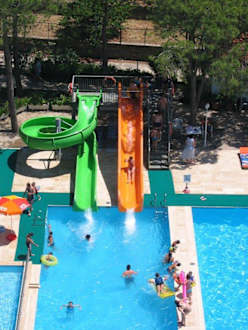 Am Pool waren vier Rutschen