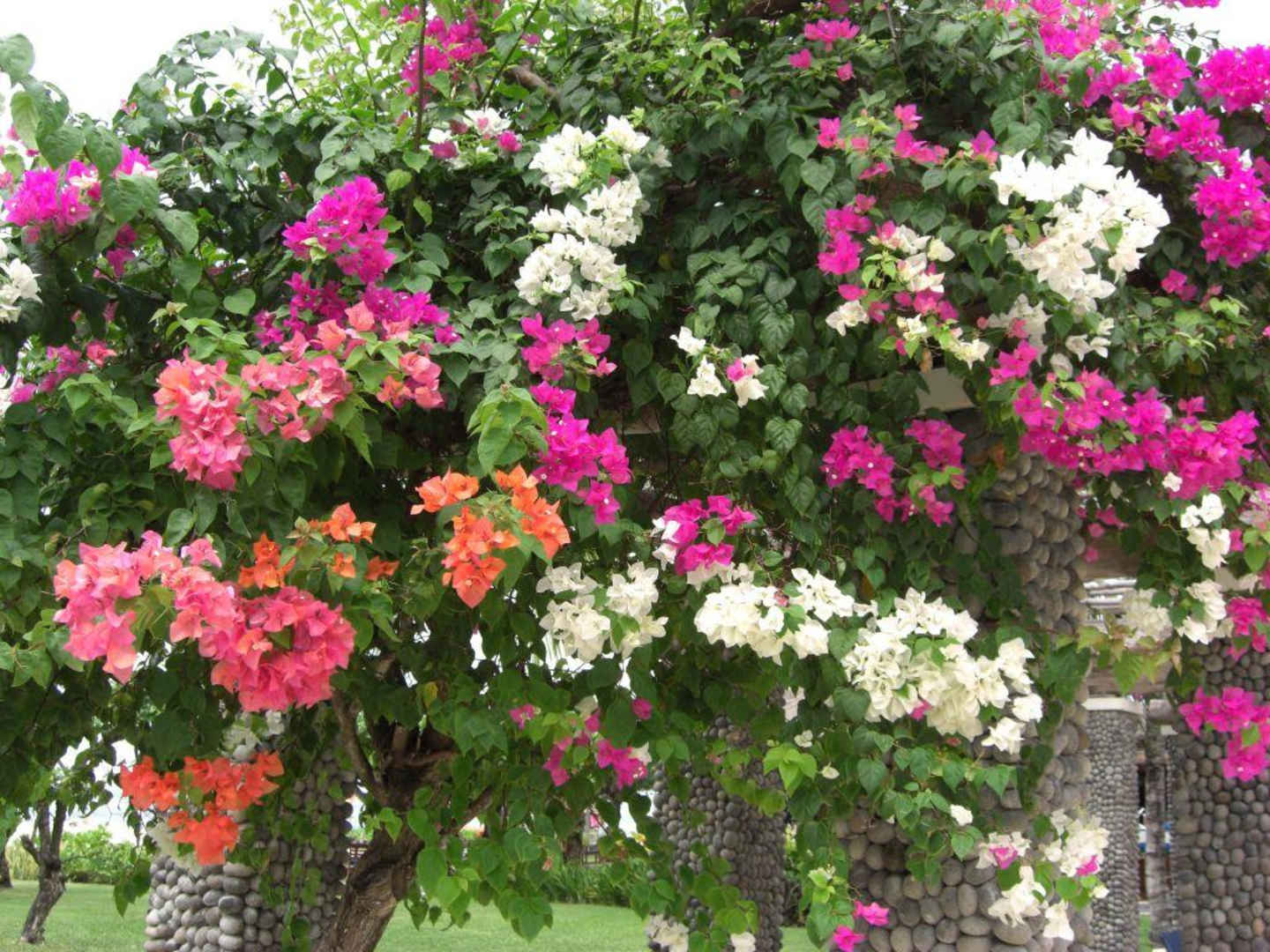 Bougainvillea in voller Blütenpracht am Pool des Hotels Grand Mirage