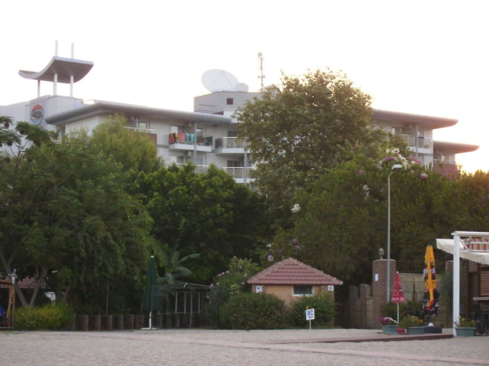 Der Blick vom Strand aufs Hotel