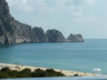 Das ist der traumhafte Blick zum Meer,oben links ist dann die Burg von Alanya,die Abends beleuchtet ist.Wenn sie Glück haben,liegen sie im Bett,ziehen die Vorhänge am Morgen zurück und werden so vom Sonnentag begrüsst.
