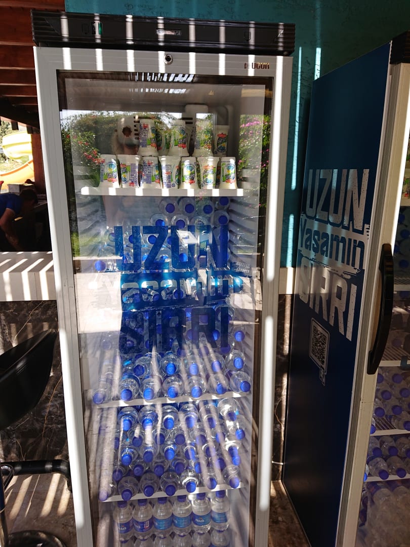 An der Poolbar und an der Snackbar stehen Kühlschränke mit Wasserflaschen (0,33 l, still) und Ayran