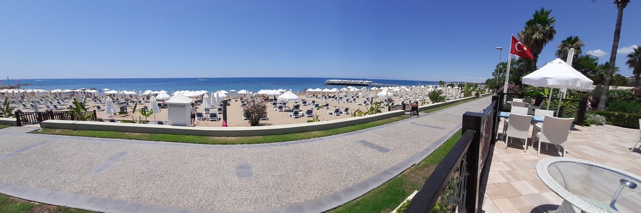 Nur die Promenade trennen Strand und Poolbar.