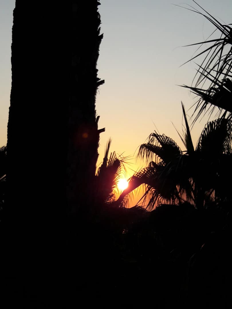 Sonnenuntergang von der Terasse beim Abendessen