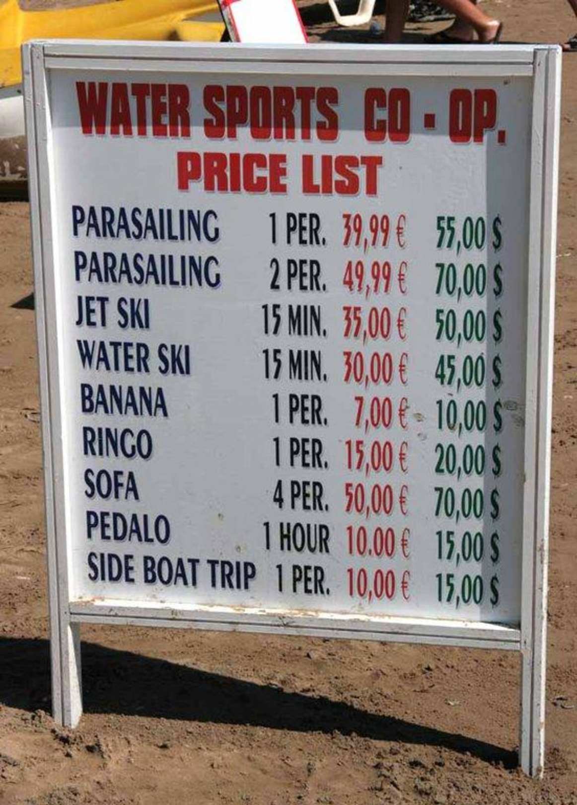 Preisliste Wassersport
