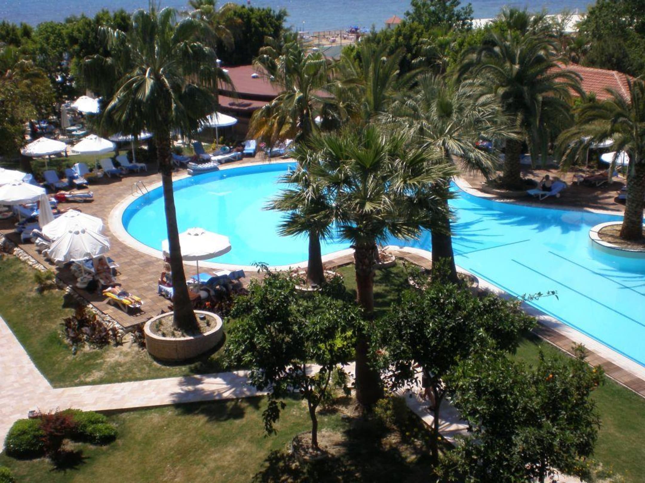 Blick vom Zimmer zum Pool