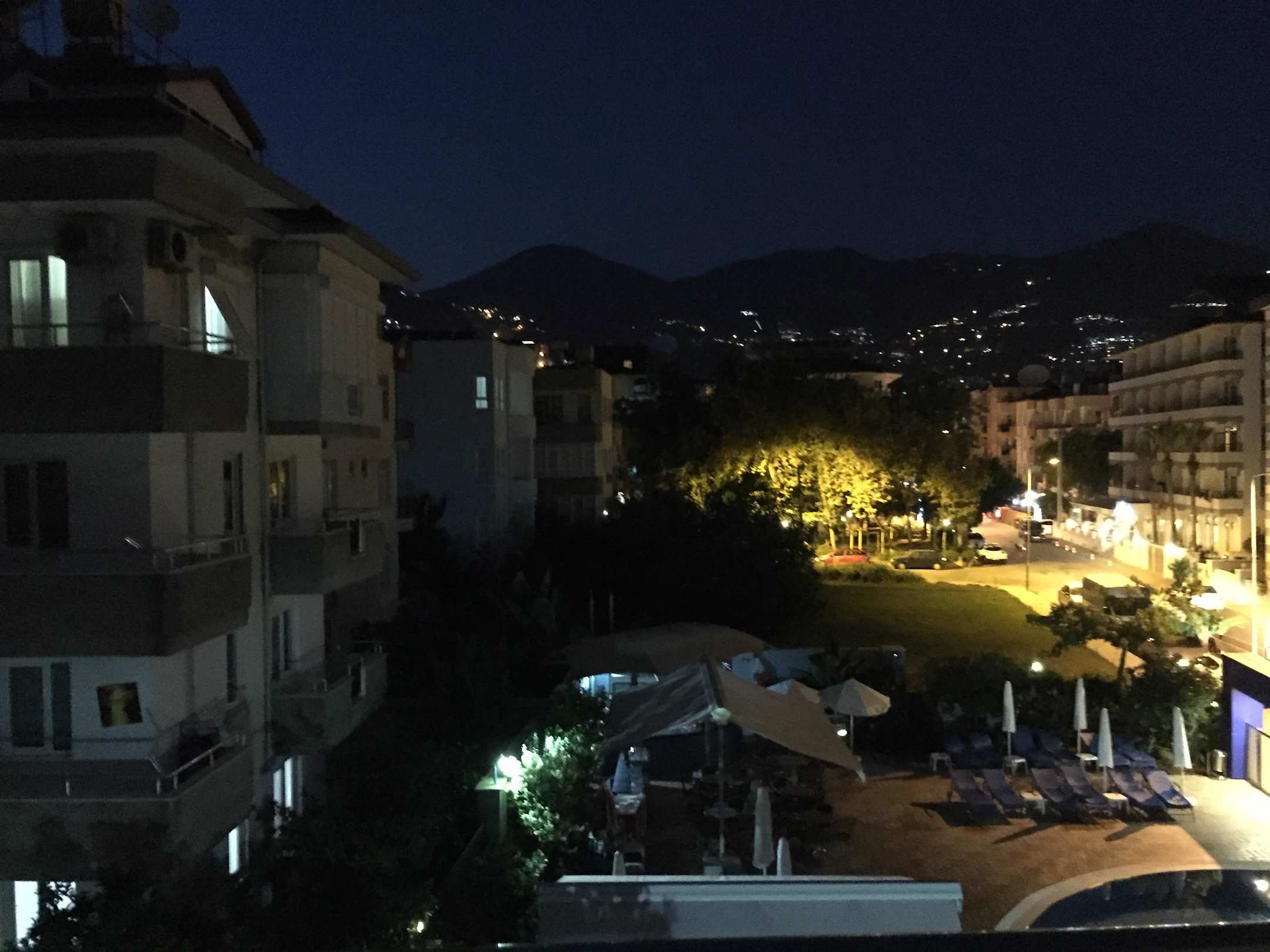 Ausblick vom Balkon bei Nacht Hotel Grand Zaman Garden