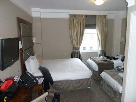 Zimmer mit AusssichtUnser Zimmer (gebucht als Doppelzimmer), erfreulicherweise mit 4 Betten und sehr groß für ein Stadthotel.