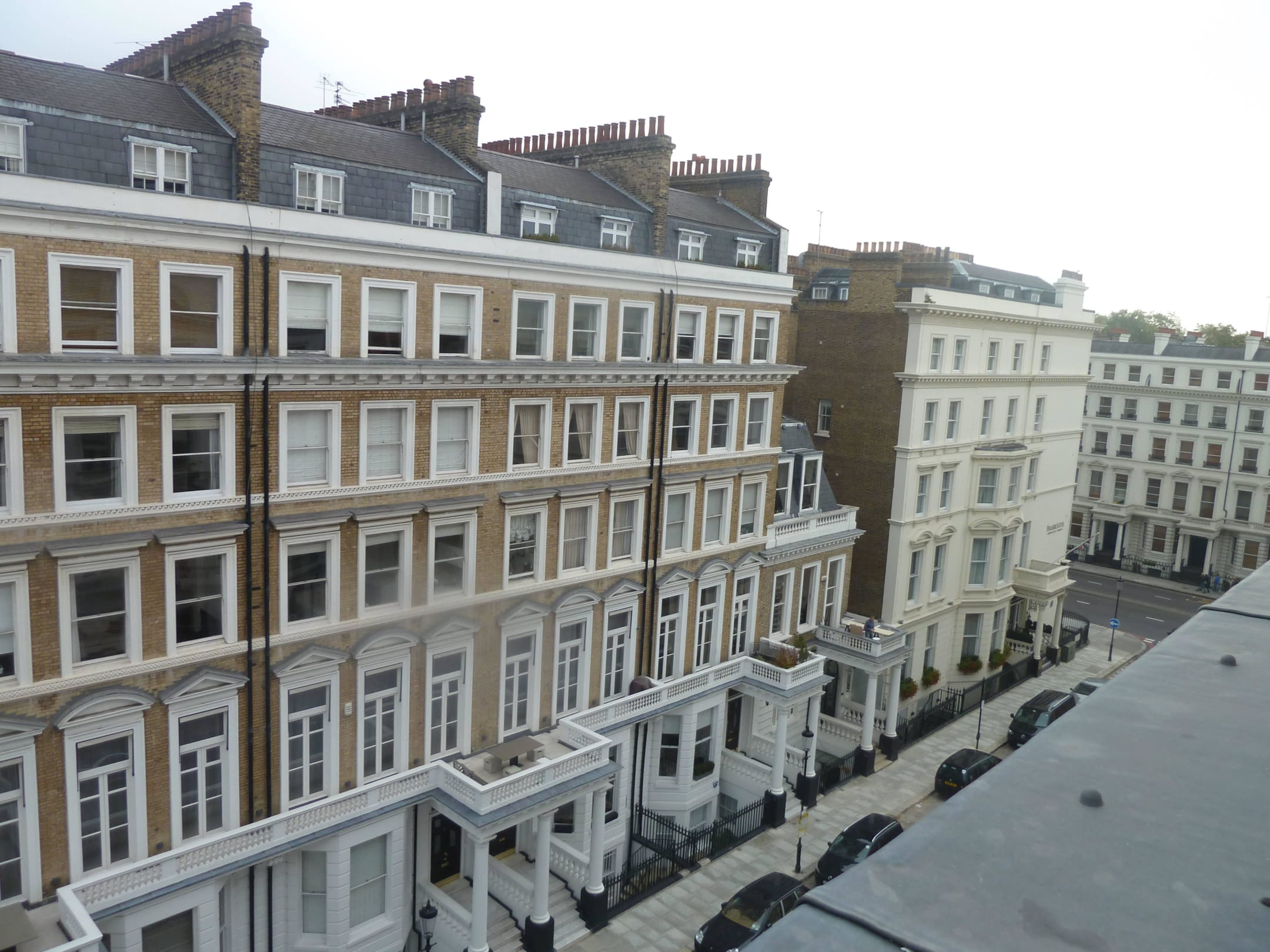 Blick aus dem ZimmerDie gegenüberliegende Straßenseite unseres Hotels, gleiche Bauweise, sehr ruhige Seitenstraße.